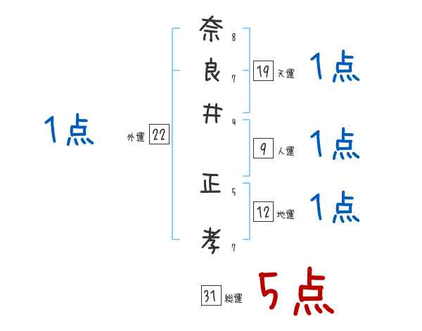奈良井正孝さんの画数の鑑定結果