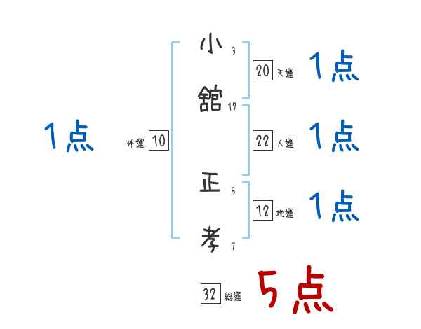 小舘正孝さんの画数の鑑定結果