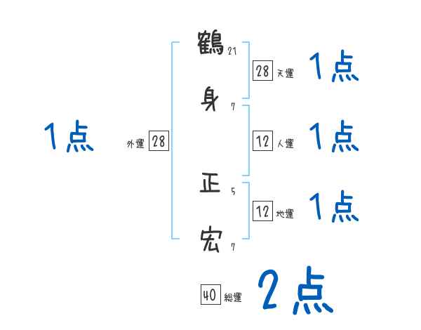 鶴身正宏さんの画数の鑑定結果