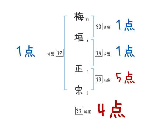 梅垣正宗さんの画数の鑑定結果