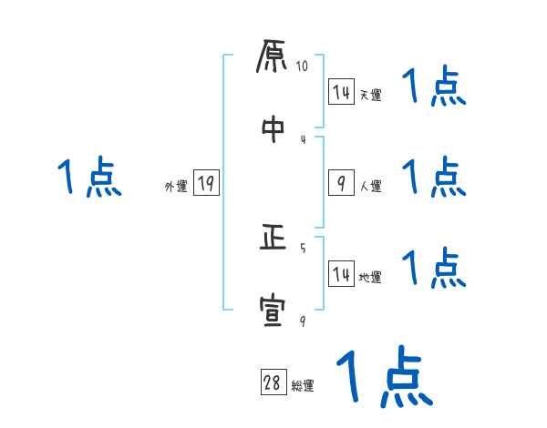 外運![]() | 原中正宣さんの外運は19画の1つ星!優れた才能を持ちますが、協調性が足りないことも。周りの人と協力する事を意識しましょう。 生活面を象徴する運勢です。外部から受ける影響力を表し、結婚運、家庭運や職場、環境への順応性を表します。 |