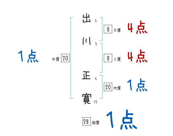 出川正寛さんの画数の鑑定結果