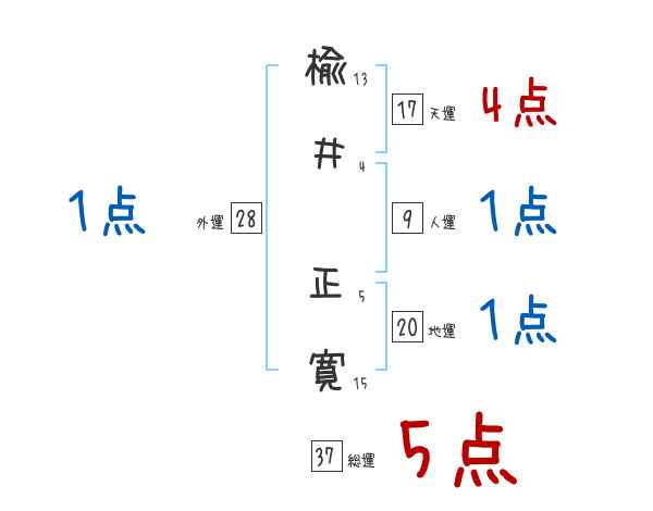 楡井正寛さんの画数の鑑定結果
