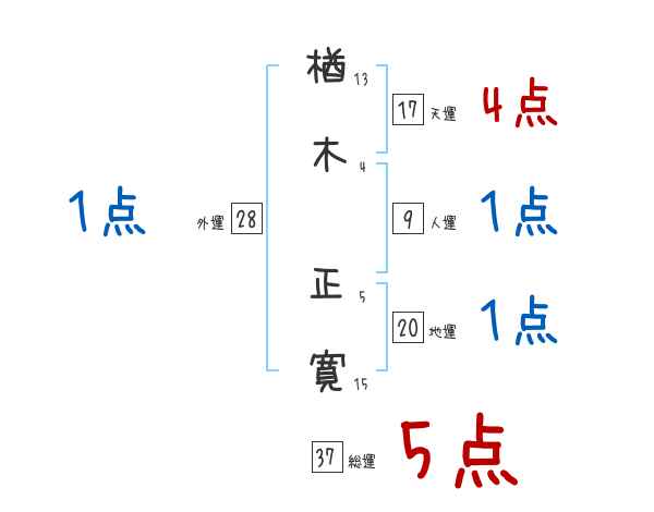 楢木正寛さんの画数の鑑定結果