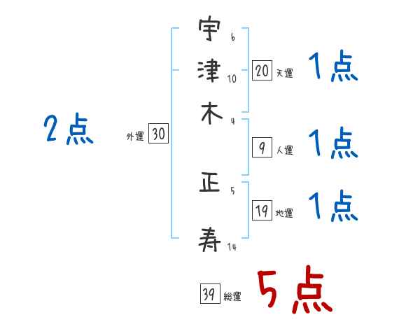 宇津木正寿さんの画数の鑑定結果