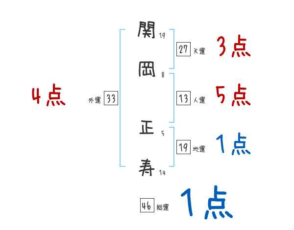 関岡正寿さんの画数の鑑定結果