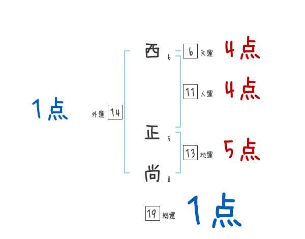 西正尚さんの画数の鑑定結果