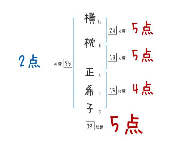 外運![]() | 横枕正希子さんの外運は26画の2つ星!波瀾万丈かも。信頼できる人を大事にしましょう。 生活面を象徴する運勢です。外部から受ける影響力を表し、結婚運、家庭運や職場、環境への順応性を表します。 |