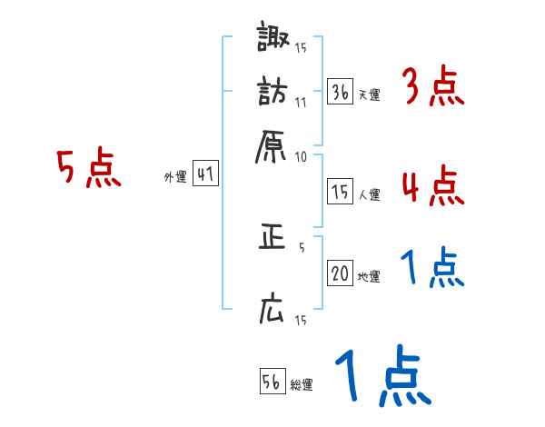 諏訪原正広さんの画数の鑑定結果