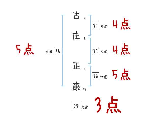 古庄正康さんの画数の鑑定結果