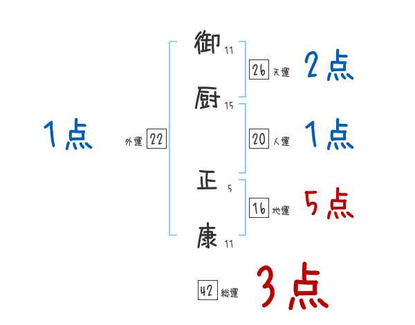 御厨正康さんの画数の鑑定結果