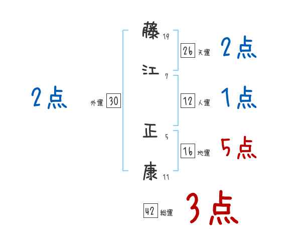 藤江正康さんの画数の鑑定結果