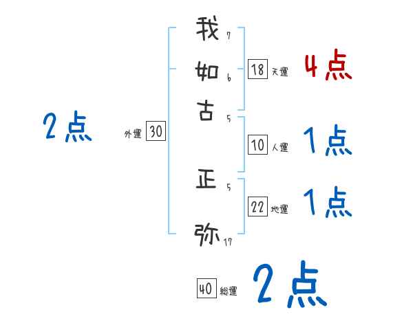 我如古正弥さんの画数の鑑定結果