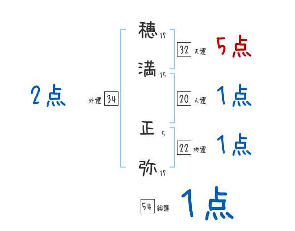 天運![]() | 穂満正弥さんの天運は32画の5つ星!柔軟性があり成功する。チャンスが多く金運が良い。 家系が持つ宿命的な運勢を表します。祖先から受け継いだ苗字ですので自分の力が及びません。家柄を象徴します。 |