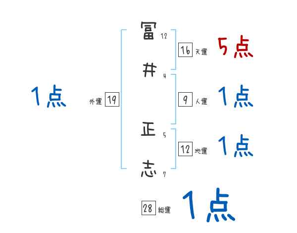 冨井正志さんの画数の鑑定結果