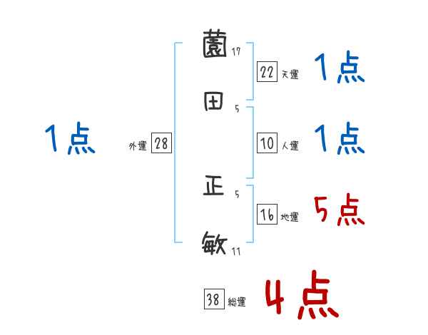 地運![]() | 薗田正敏さんの地運は16画の5つ星!人望が厚く大きく発展する。逆転成功が見える。 個性を表す基礎的な運勢です。性格形成や対人関係、行動力など家庭環境に影響されます。主に誕生してから20歳くらいまでの若年期の運勢を表します。 |