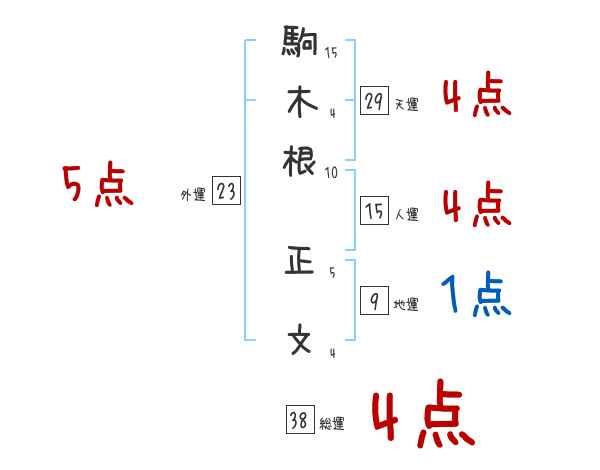 駒木根正文さんの画数の鑑定結果