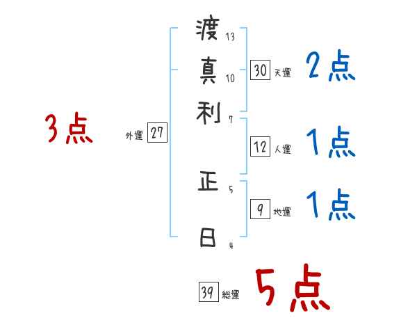 渡真利正日さんの画数の鑑定結果