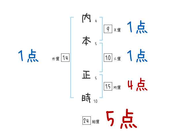 外運![]() | 内本正時さんの外運は14画の1つ星!人に対して優しいがストレスを溜め込みがち。人間関係のトラブルを避けるよう気をつけましょう。 生活面を象徴する運勢です。外部から受ける影響力を表し、結婚運、家庭運や職場、環境への順応性を表します。 |