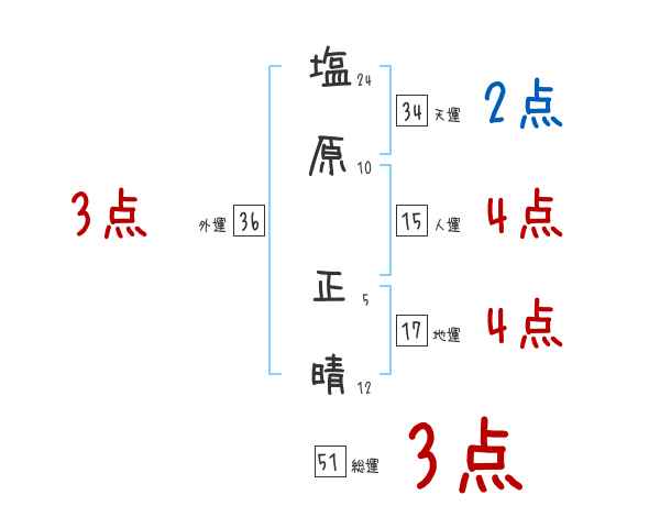 塩原正晴さんの画数の鑑定結果