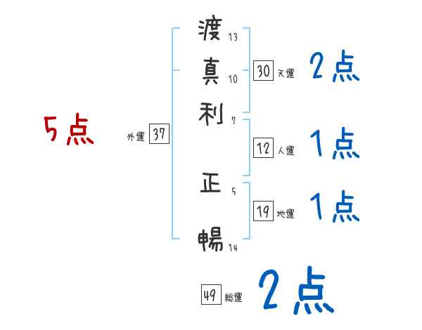 外運![]() | 渡真利正暢さんの外運は37画の5つ星!努力家で順応性に優れる。現実的な考え方ができ忠実に物事をこなす。 生活面を象徴する運勢です。外部から受ける影響力を表し、結婚運、家庭運や職場、環境への順応性を表します。 |