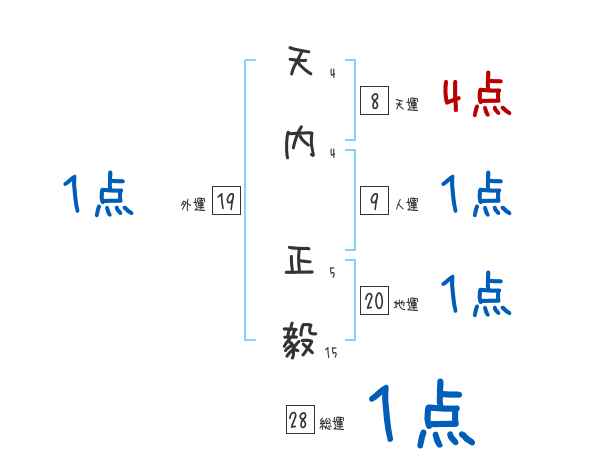 天内正毅さんの画数の鑑定結果