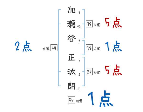 加瀬谷正汰朗さんの画数の鑑定結果