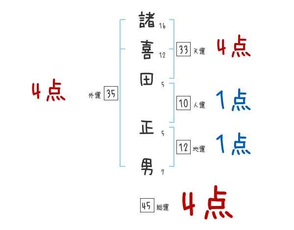 諸喜田正男さんの画数の鑑定結果