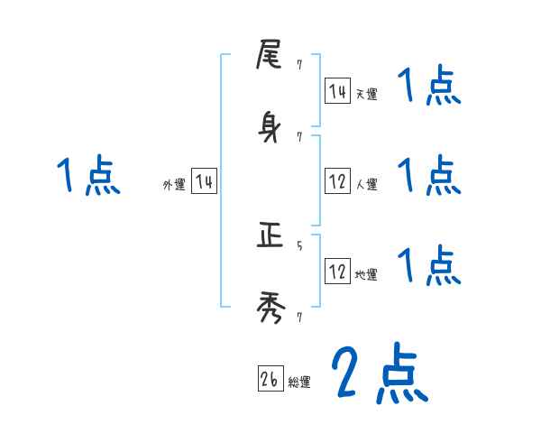 尾身正秀さんの画数の鑑定結果