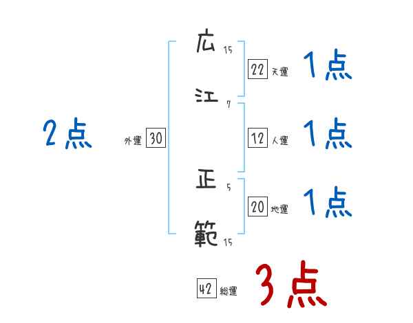 天運![]() | 広江正範さんの天運は22画の1つ星!努力することが苦手ないっぽう手先が器用。芸術性にも優れる。 家系が持つ宿命的な運勢を表します。祖先から受け継いだ苗字ですので自分の力が及びません。家柄を象徴します。 |