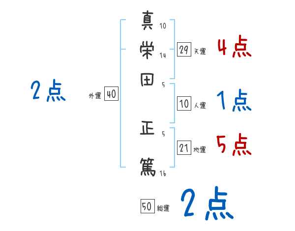 外運![]() | 真栄田正篤さんの外運は40画の2つ星!自信過剰で物事に固執するためトラブルに注意。 生活面を象徴する運勢です。外部から受ける影響力を表し、結婚運、家庭運や職場、環境への順応性を表します。 |