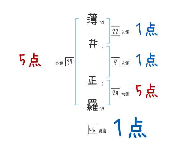 薄井正羅さんの画数の鑑定結果