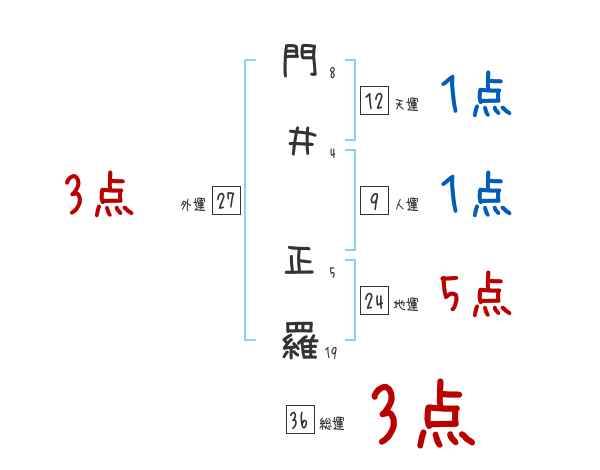 総運![]() | 門井正羅さんの総運は36画の3つ星!先見性が豊かです。多少神経質で苦労することも。 あなたの人生を表す1番重要な運勢です。生涯を通じて影響する総合運となり、主に50歳以降の晩年期に影響を及ぼします。 |
