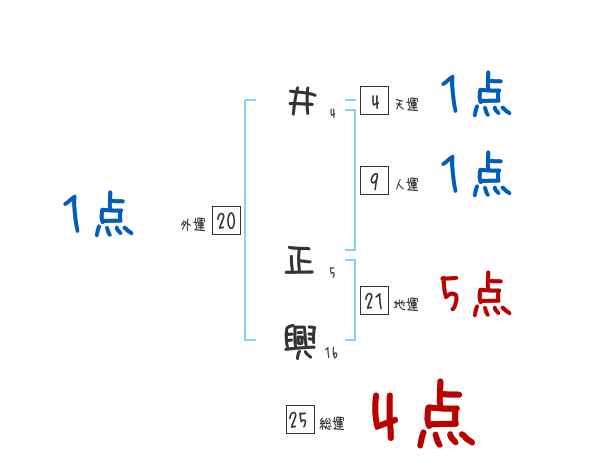 井正興さんの総運は25画の4つ星