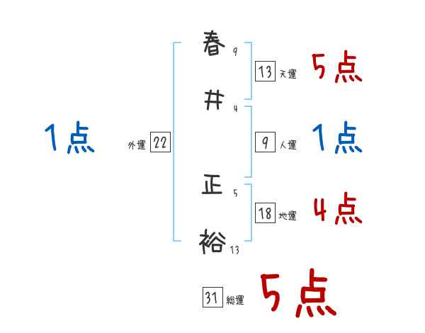 春井正裕さんの画数の鑑定結果