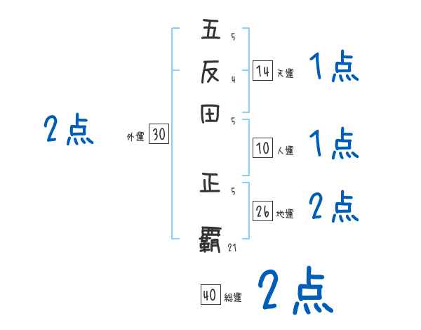五反田正覇さんの画数の鑑定結果