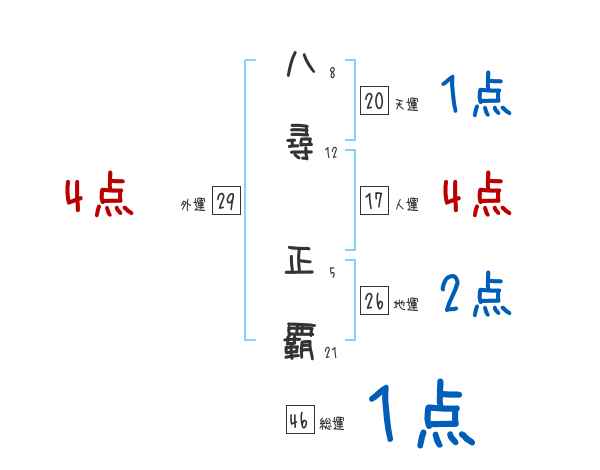 八尋正覇さんの画数の鑑定結果