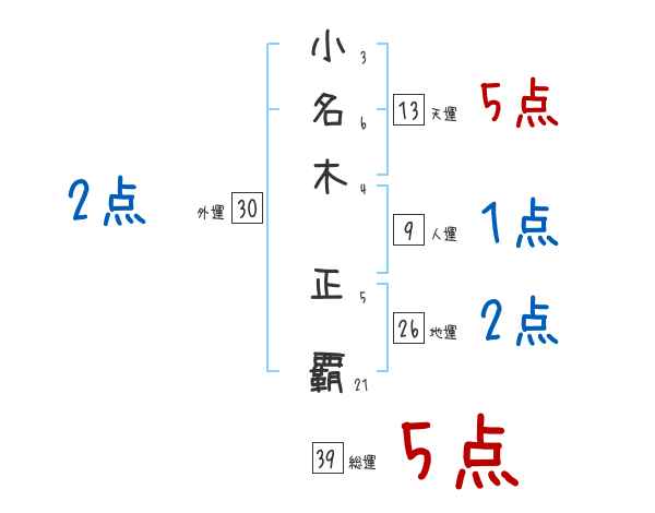 小名木正覇さんの画数の鑑定結果