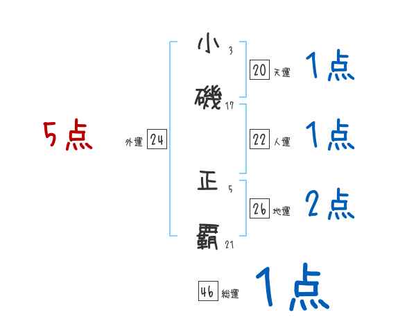 小磯正覇さんの画数の鑑定結果