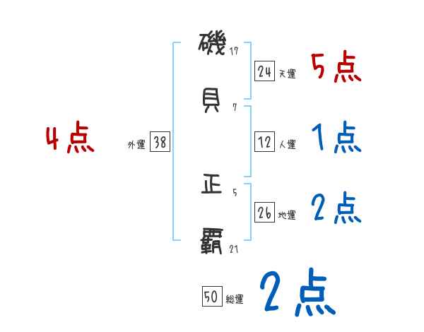 磯貝正覇さんの画数の鑑定結果