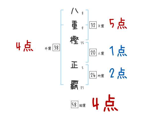 八重樫正覇さんの画数の鑑定結果