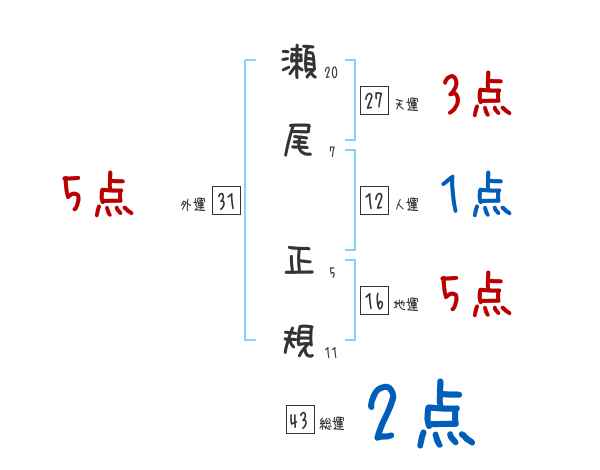 瀬尾正規さんの画数の鑑定結果