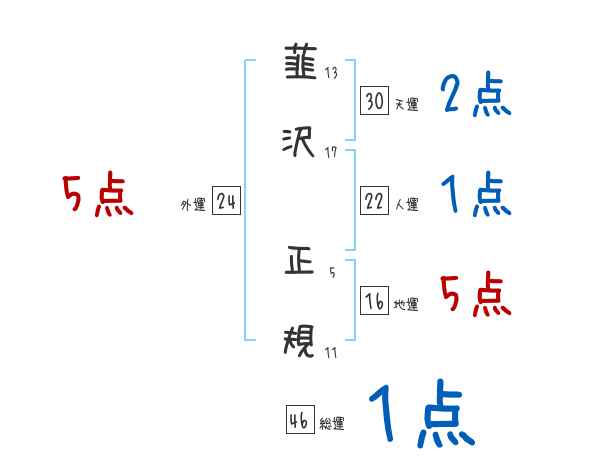韮沢正規さんの画数の鑑定結果