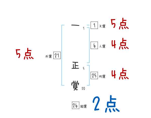 天運![]() | 一正覚さんの天運は1画の5つ星!行動力、指導力があり出世し繁栄する。幸運に恵まれる。 家系が持つ宿命的な運勢を表します。祖先から受け継いだ苗字ですので自分の力が及びません。家柄を象徴します。 |