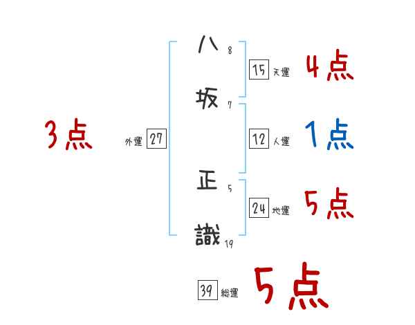 八坂正識さんの画数の鑑定結果