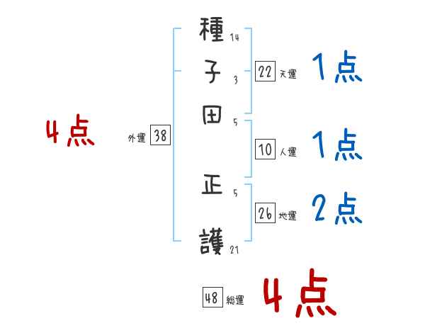 天運![]() | 種子田正護さんの天運は22画の1つ星!努力することが苦手ないっぽう手先が器用。芸術性にも優れる。 家系が持つ宿命的な運勢を表します。祖先から受け継いだ苗字ですので自分の力が及びません。家柄を象徴します。 |