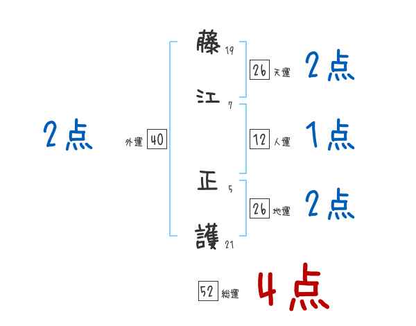 地運![]() | 藤江正護さんの地運は26画の2つ星!波瀾万丈かも。信頼できる人を大事にしましょう。 個性を表す基礎的な運勢です。性格形成や対人関係、行動力など家庭環境に影響されます。主に誕生してから20歳くらいまでの若年期の運勢を表します。 |