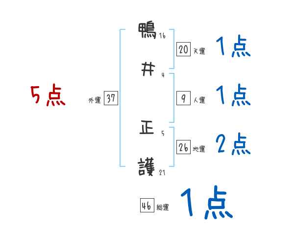 鴨井正護さんの画数の鑑定結果