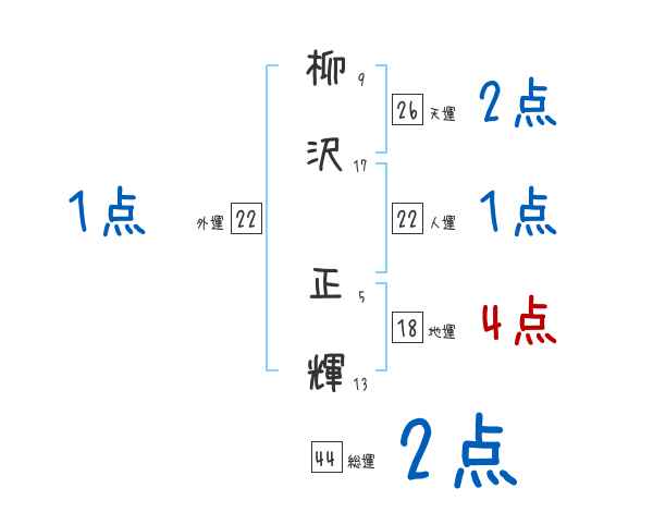 柳沢正輝さんの画数の鑑定結果