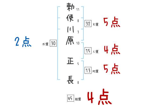 勅使川原正長さんの画数の鑑定結果